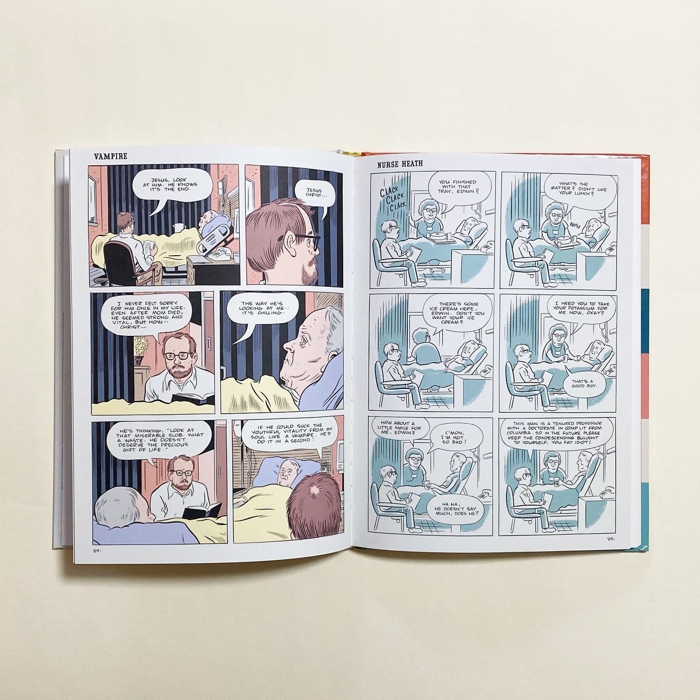 一話完結の短いエピソードが積み重なり、彼の人生や感情がじわじわと浮かび上がってきます。ページごとに絵柄やタッチが変化するのも特徴で、クラシックなコミックストリップのような軽やかさと、ユーモアと哀しさが同時に漂います。人と人との距離や、どうしようもない孤独を、どこか可笑しく描いた、アメリカの漫画家・イラストレーターDaniel Clowes(ダニエル・クロウズ)の作品です。