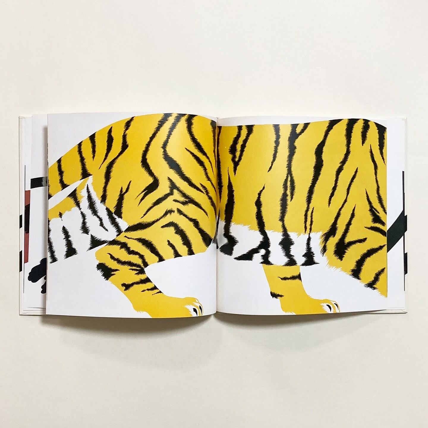 タイトルを直訳すると「食べろ、さもないと私がお前を食べるぞ」。シンプルなかたちと鮮やかな色の変化の中で、生きものたちの関係や流れが、静かに力強く描かれています。