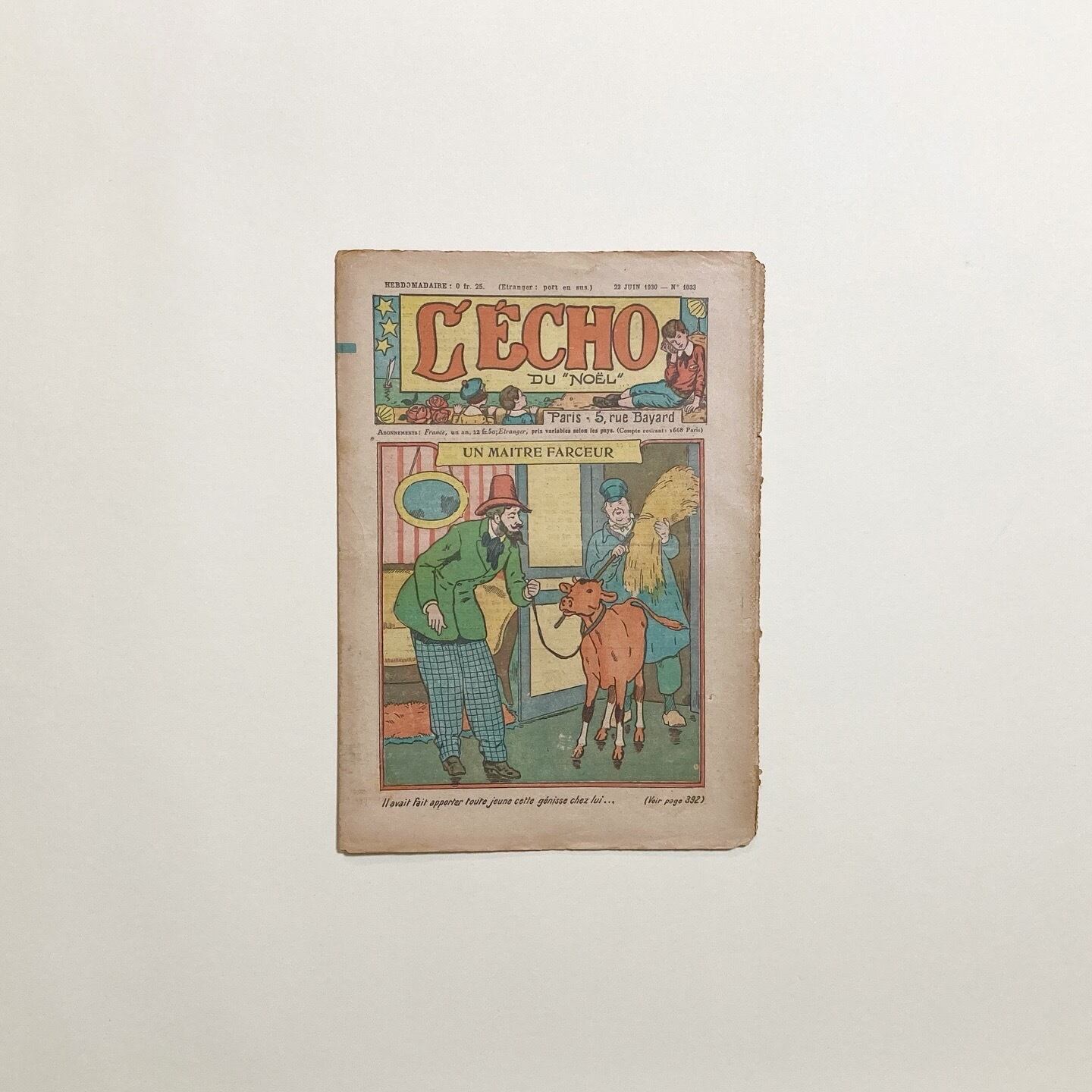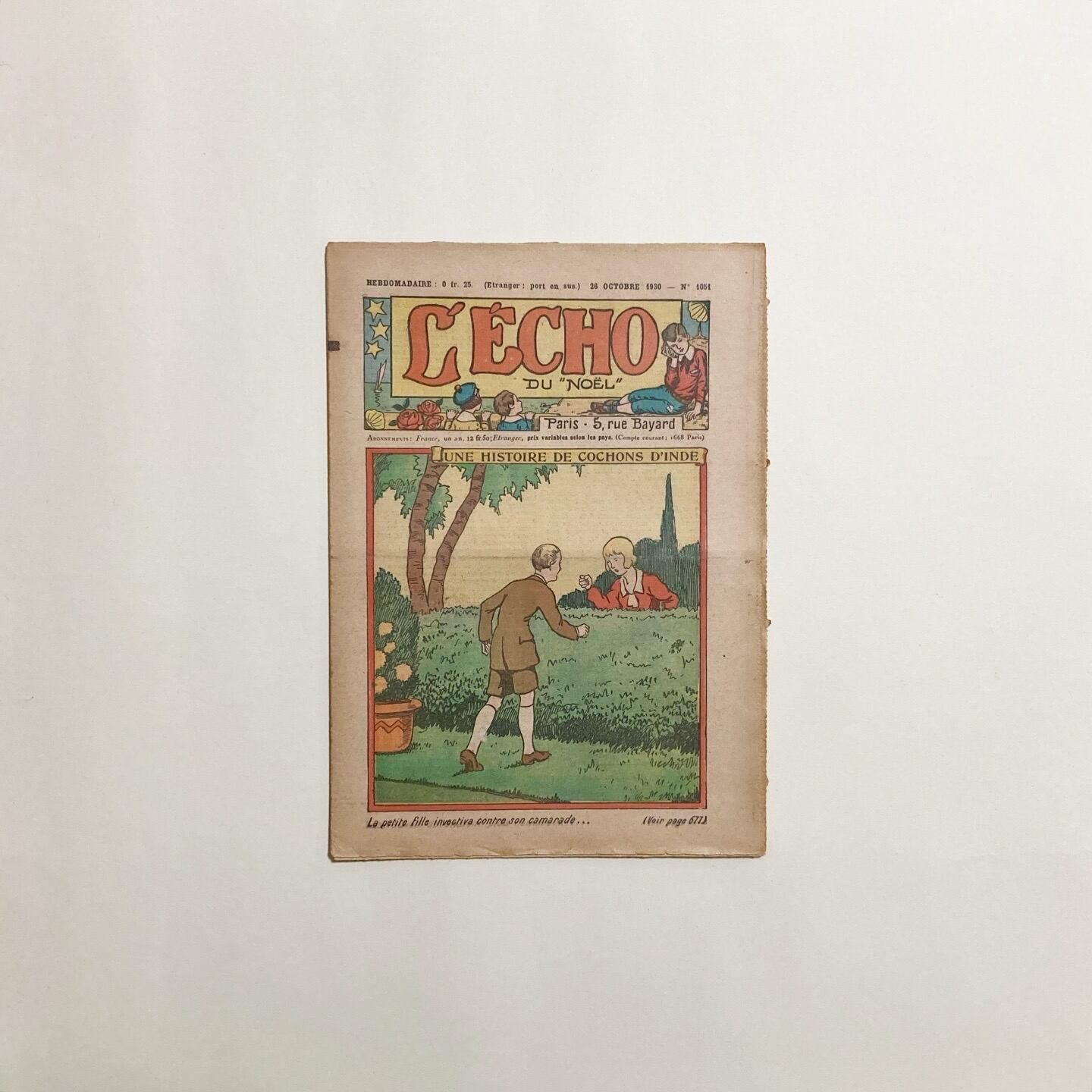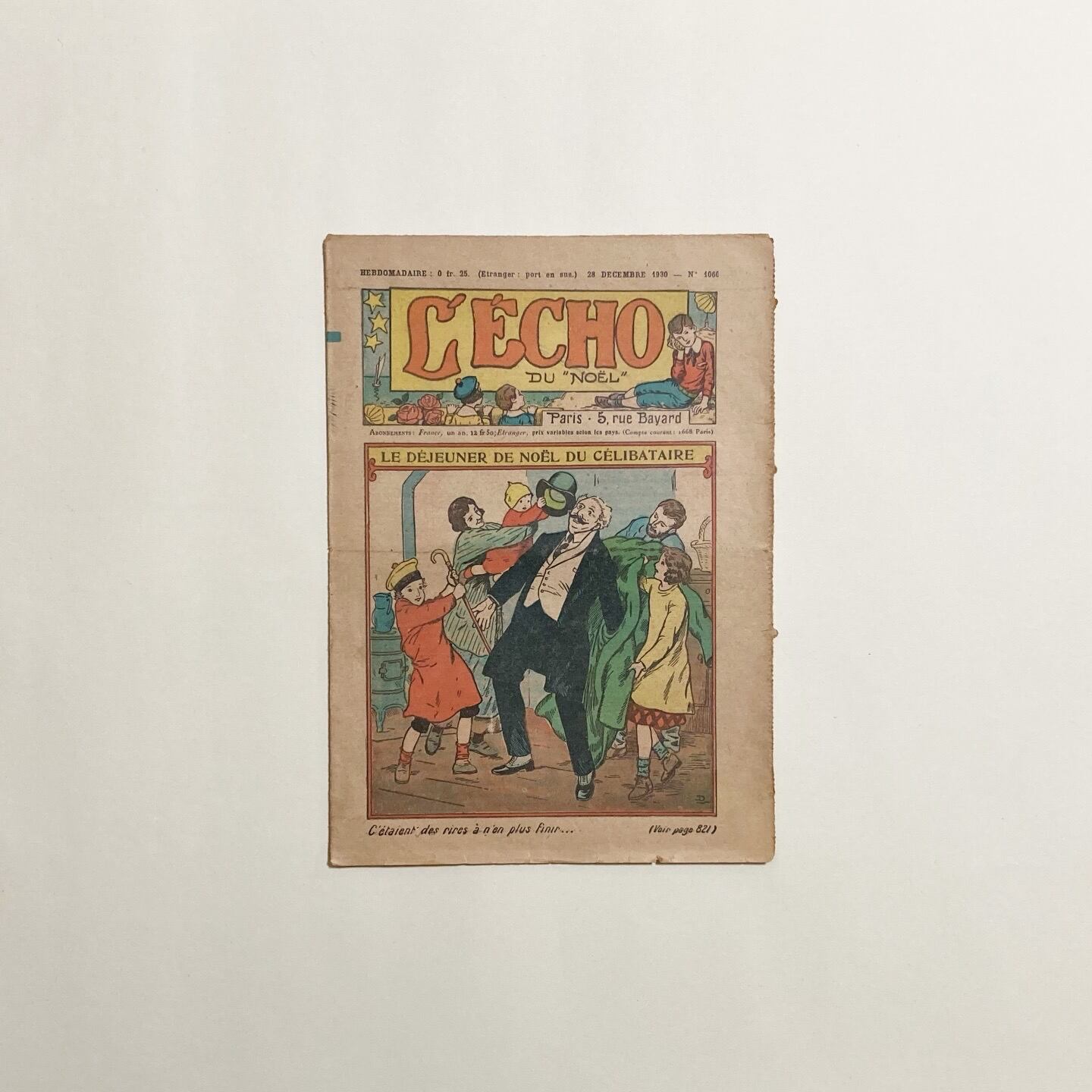 フランスの子ども向け週刊誌「L’Écho du Noël」。1906年に創刊され、絵物語やゲームなど、遊びながら楽しめるイラスト入りの冊子として親しまれていました。主に1920年代〜1930年代に発行されたもので、綴じのない折り構造が特徴です。各号ごとに内容が異なり、お好きなものをお選びいただけます。図版はカラーとモノクロで構成されています。
