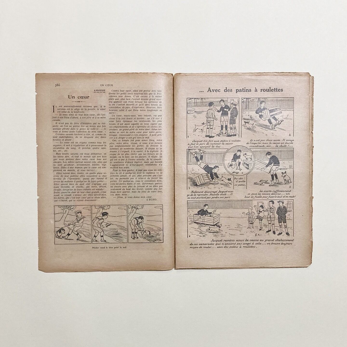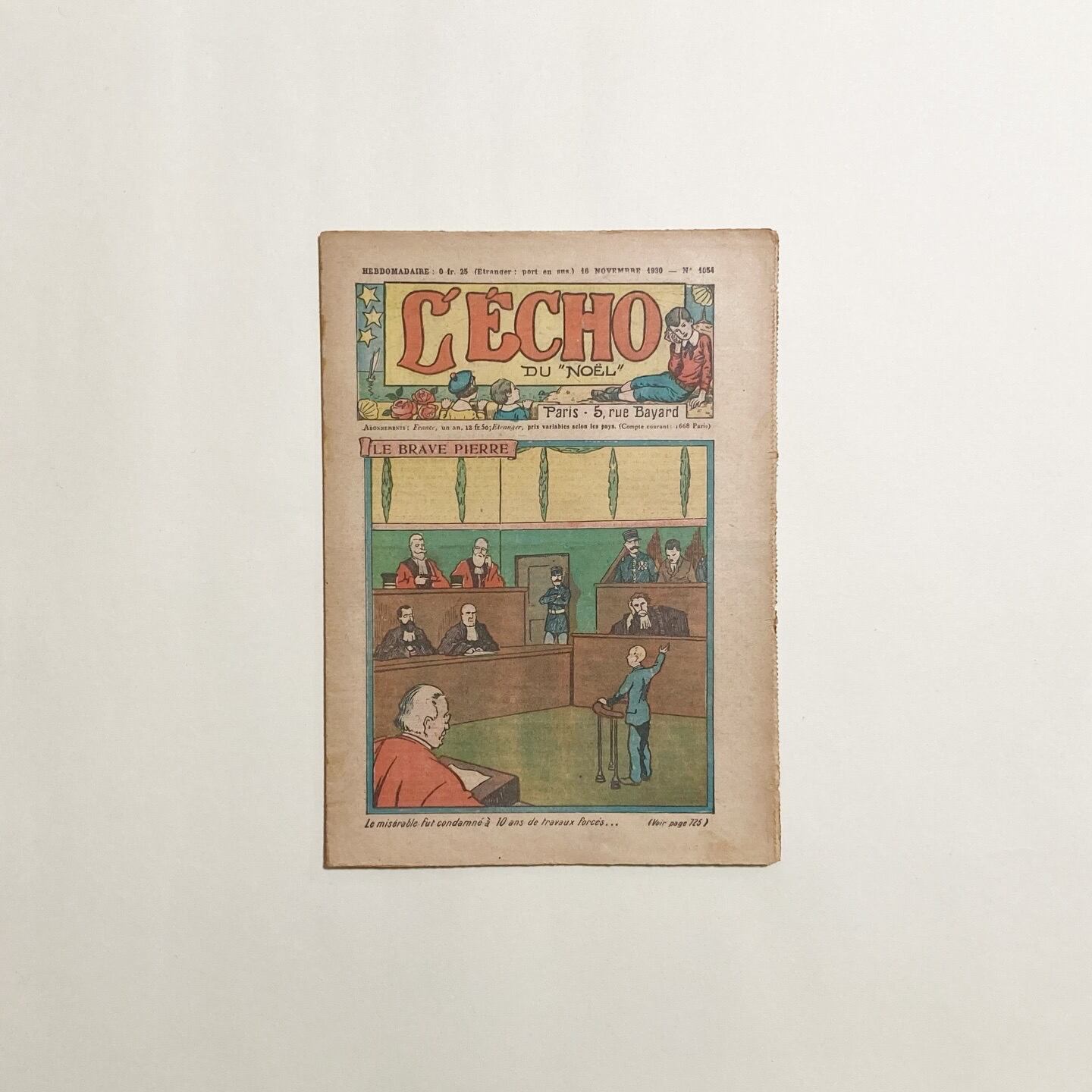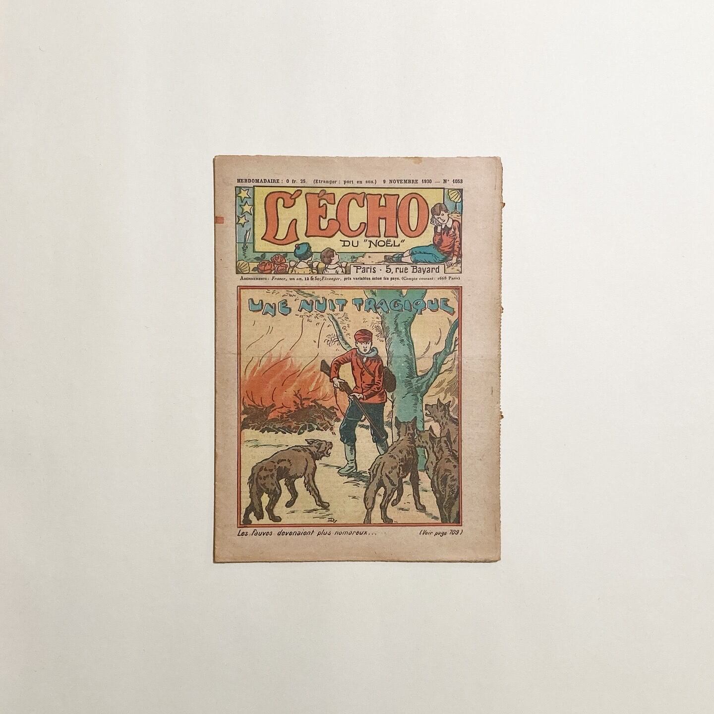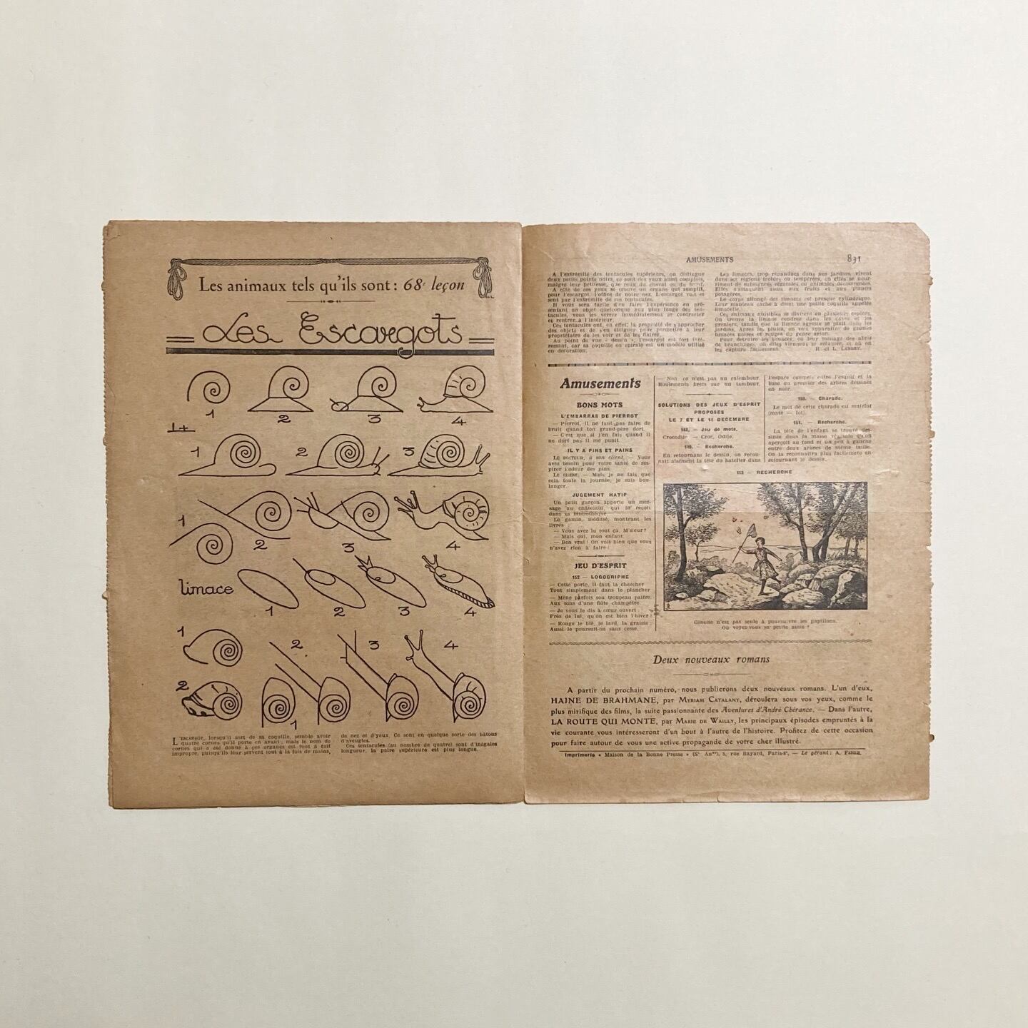 フランスの子ども向け週刊誌「L’Écho du Noël」。1906年に創刊され、絵物語やゲームなど、遊びながら楽しめるイラスト入りの冊子として親しまれていました。主に1920年代〜1930年代に発行されたもので、綴じのない折り構造が特徴です。各号ごとに内容が異なり、お好きなものをお選びいただけます。図版はカラーとモノクロで構成されています。